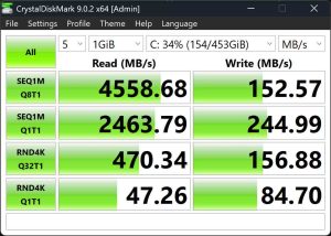 The Dell 14 Plus is powered by the AMD Ryzen AI 7 350, an 8-core processor from AMD’s Kraken Point family. Four of those cores are full Zen 5 cores capable of boosting up to 5.0GHz, with the remaining four being the more efficiency-oriented Zen 5c cores. This combination strikes a reasonable balance between performance and power efficiency, which suits the form factor well. There is no dedicated GPU, but the integrated Radeon 860M handles graphics duties adequately. The processor is paired with 16GB of LPDDR5X memory running at 7500MT/s and a 512GB M.2 PCIe NVMe SSD.