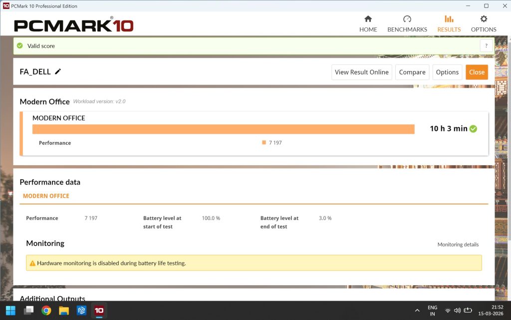 Battery life is one of the stronger aspects of the Dell 14 Plus. The AMD Ryzen AI 300 series processors are notably efficient, and that efficiency translates into real-world endurance. With light to moderate use consisting of Google Chrome, Netflix streaming, and word processing, we were able to get around 9 hours of screen time. Heavier workloads such as video editing or 3D rendering will naturally bring that number down, but those use cases are outside the intended scope of this laptop. For everyday productivity use, the Dell 14 Plus comfortably delivers all-day battery life without needing to reach for the charger.