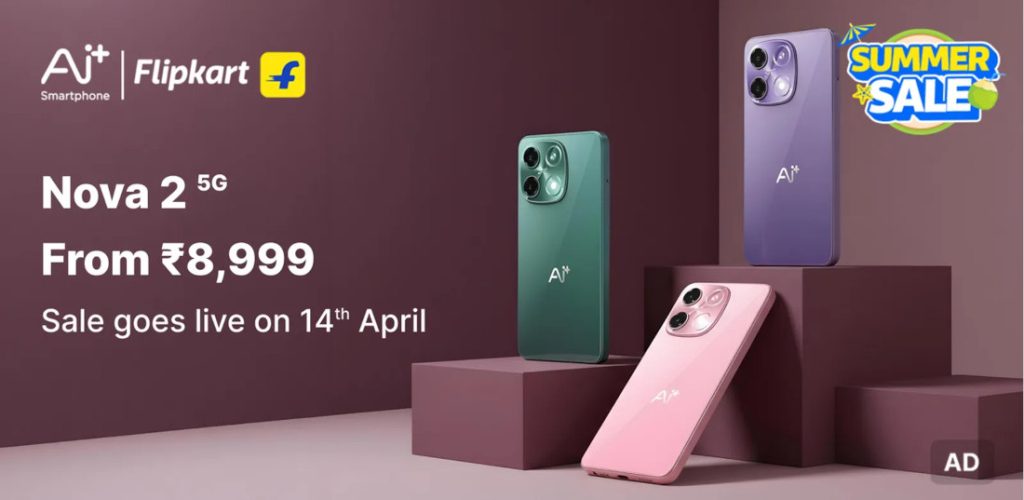 The Ai+ Nova 2 5G comes in Purple, Green, Pink, Blue, and Black colors and is priced at Rs. 8,999 for the 4GB + 64GB model and the 6GB + 128GB model costs Rs. 10,999. It will be available from Flipkart and select offline stores starting from April 14th at 12 noon.