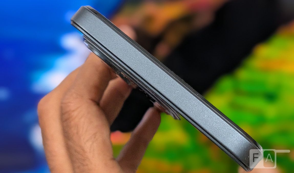 The phone has a glossy finish on the back, which is prone to fingerprints easily. It also comes in purple, green, pink, and blue colors, in addition to black. The phone has IP64 ratings for dust and water resistance.