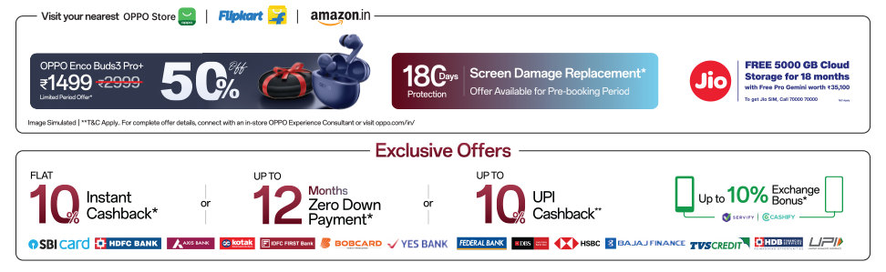 - Get OPPO Enco Buds3 Pro+ at Rs. 14999 (50% discount) with the phone
