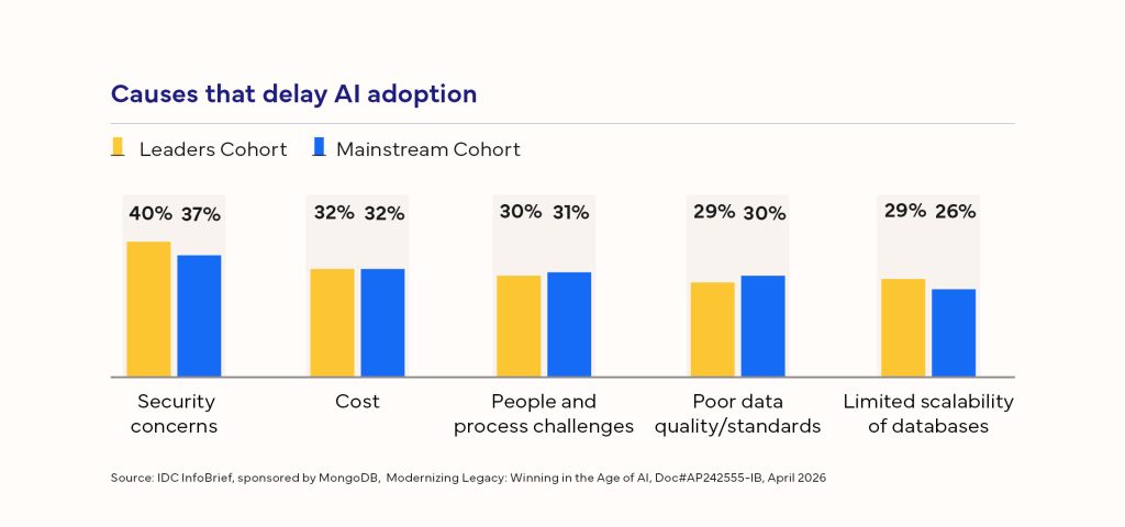 Security concerns, migration complexity, and high upfront costs further slow transformation efforts.