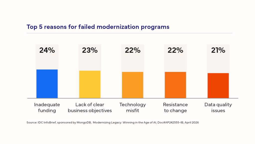 - 90% have experienced failed modernisation initiatives