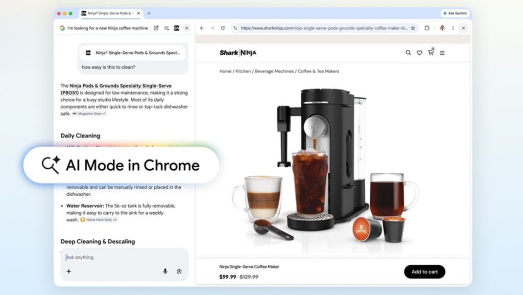 Google is rolling out a new AI Mode experience in Chrome that integrates AI assistance directly into the browsing flow. The update reduces the need to switch between tabs by allowing users to view webpages, search results, and AI responses in a single interface. The aim is to keep browsing context intact while users search, read, and explore the web.