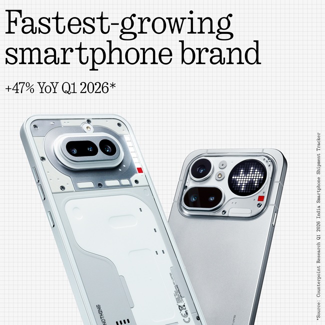 India smartphone market falls 3% in Q1 2026; Nothing leads growth with 47% YoY: Counterpoint