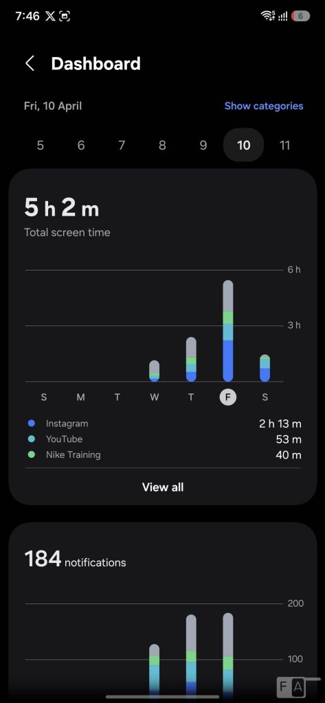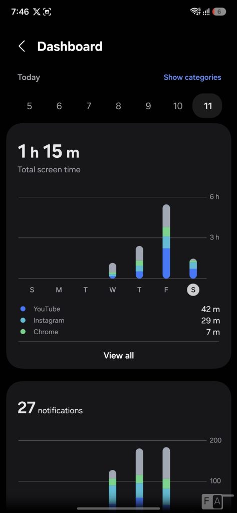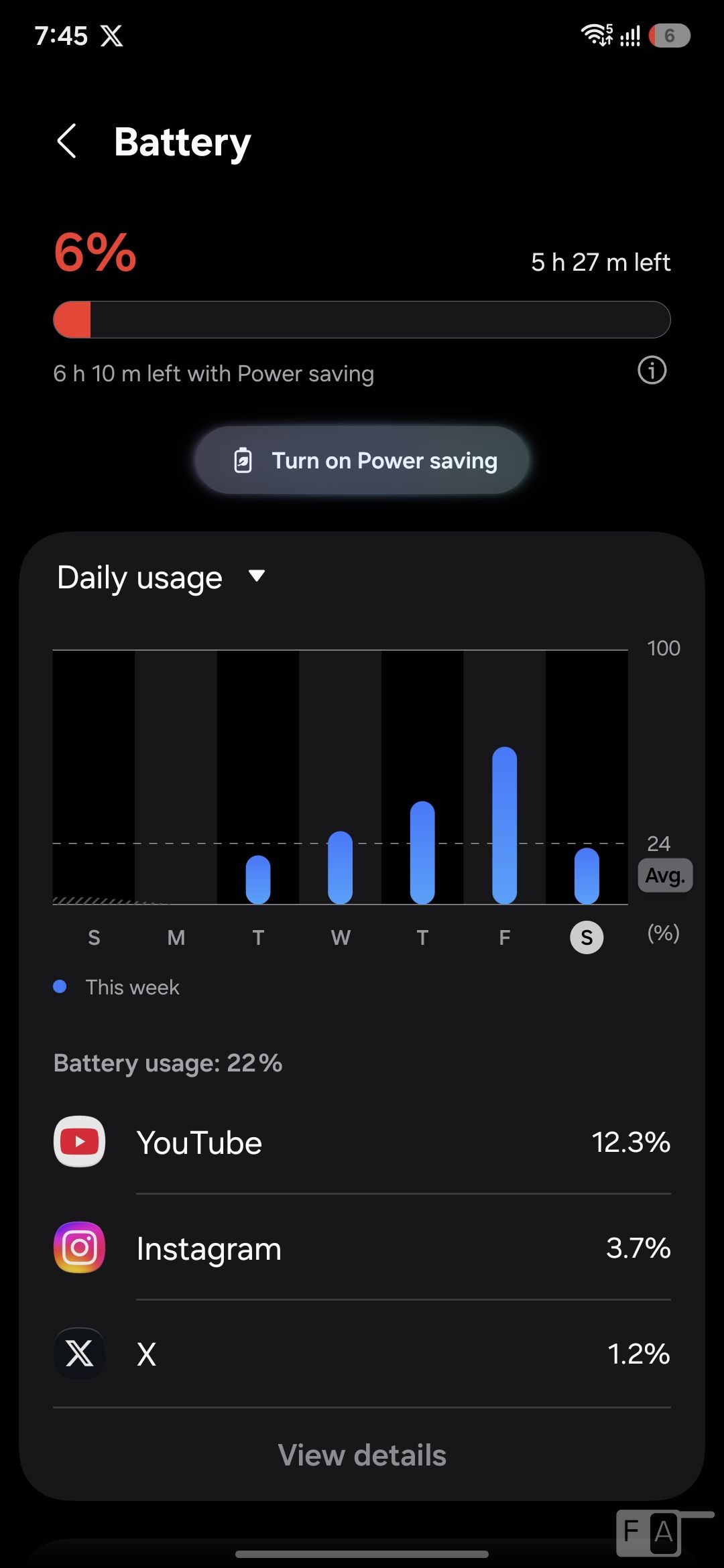 The Galaxy A57 5G retains the 5000mAh battery from the last 4 generations. I got about 6 hours of screen on time, mostly on Wi-Fi and occasionally on 5G, with over 2 days of use in 120Hz refresh rate, thanks to the One UI 8.5 optimization. It should last for a day easily even with heavy use.