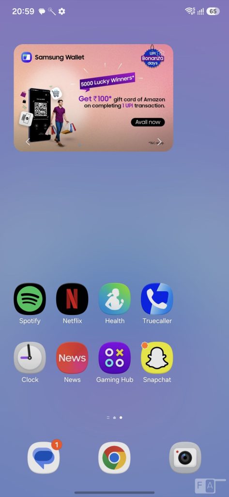 Apart from the usual set of utility apps and Google apps, the smartphone comes with Netflix, Truecaller, Spotify, Snapchat and Microsoft apps such as Microsoft 365, OneDrive, Outlook and LinkedIn. You get the option to install apps when you are setting up the phone, which you can choose not to. It also has Samsung Wallet via NFC. The phone doesn’t have ads but shows notifications of new Samsung products occasionally.