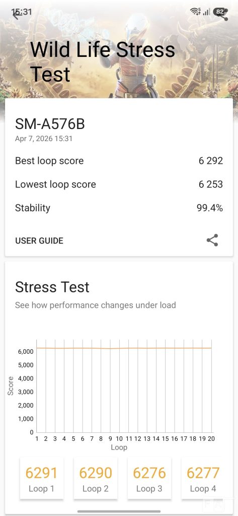 The Galaxy A56 5G is the first Samsung phone to be powered by the new Exynos 1680 4nm SoC. This has 1x Cortex-A720 @ 2.90GHz, 4x Cortex-A720 @ 2.60GHz, 3x Cortex-A520 @ 1.95GHz. This is a 1+4+3 revised architecture, which promises a 16% performance boost over the previous generation. I didn’t face any performance issues; it was smooth.