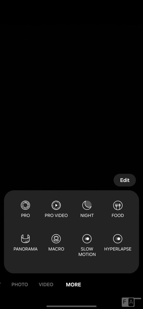 Even though there is no major change in the camera setup, there are some minor changes in the UI with the One UI 8.5. You can choose the 50MP option from the aspect ratio settings on the top, and the default output is 12MP instead of 12.5MP after pixel binning. It also has AR stickers, a scene optimizer, panorama, hyperlapse, food, dual rec, and more modes.