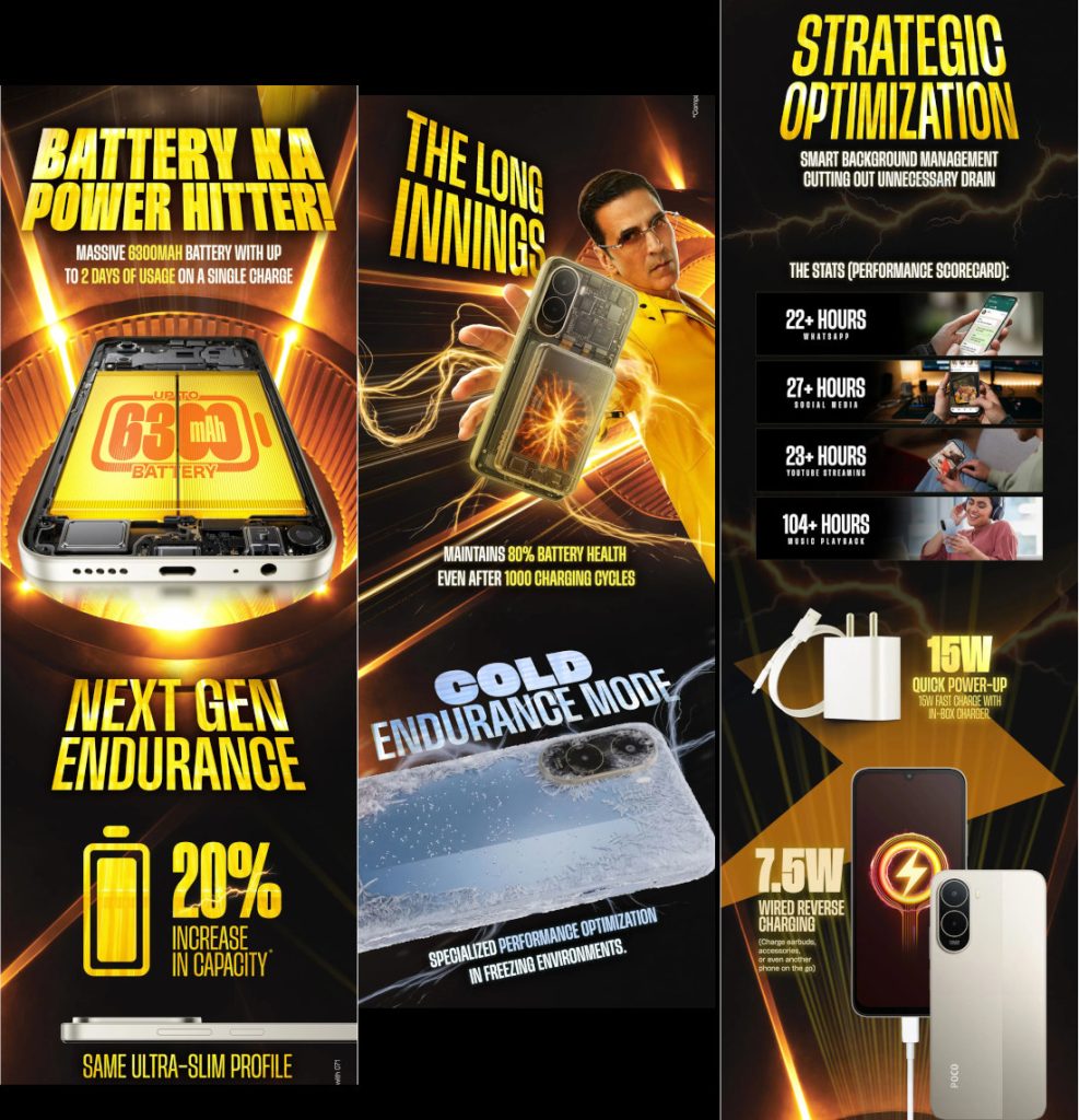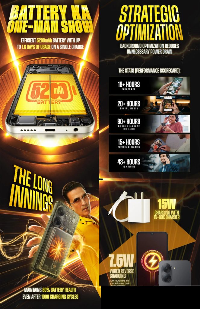 The POCO C81X will come with a 5200mAh battery while retaining a familiar design, 80% battery health even after 1000 charging cycles, 15W fast charging support, and 7.5W reverse wired charging.