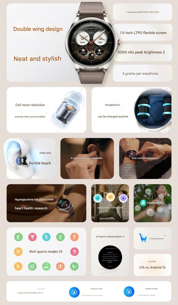 HUAWEI WATCH Buds 2 with 1.5″ AMOLED display, built-in wireless earbuds announced