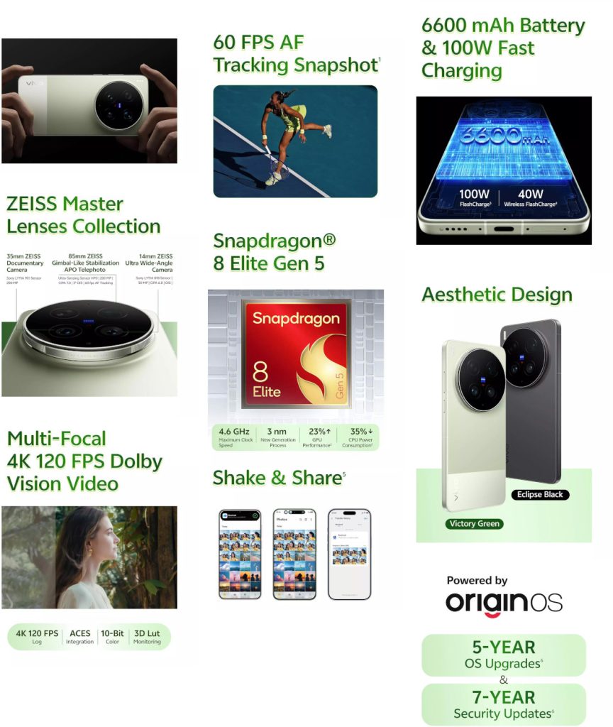 - Rear Cameras: A triple ZEISS Master setup featuring a 200MP primary sensor, a 200MP periscope telephoto lens with gimbal-grade stabilization, and a 50MP ultra-wide sensor