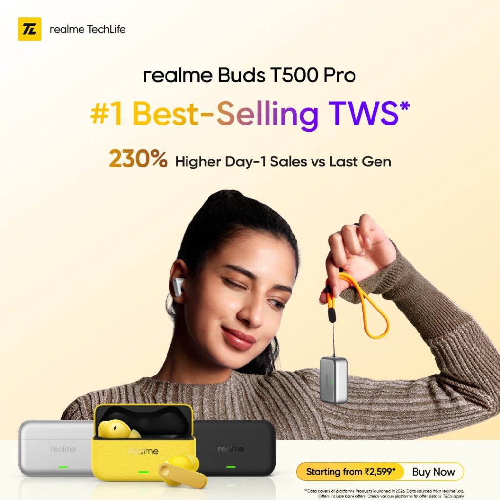 The realme Buds T500 Pro is available at a first-sale introductory price of INR 2,599 (first sale offer from 23rd to 26th April). Consumers can purchase the earbuds online via realme.com, Flipkart, Myntra, and Amazon, as well as through traditional retail mainline stores.
