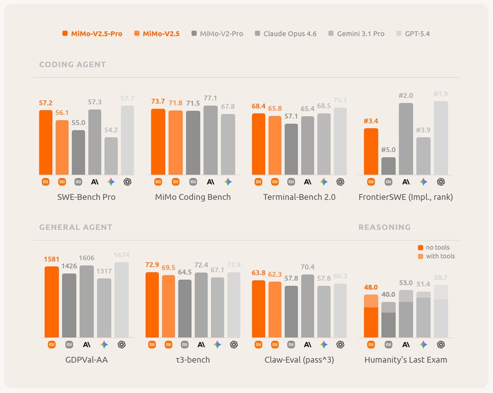 • MiMo-V2.5-Pro: Focused on complex agentic tasks, coding, and long-horizon reasoning