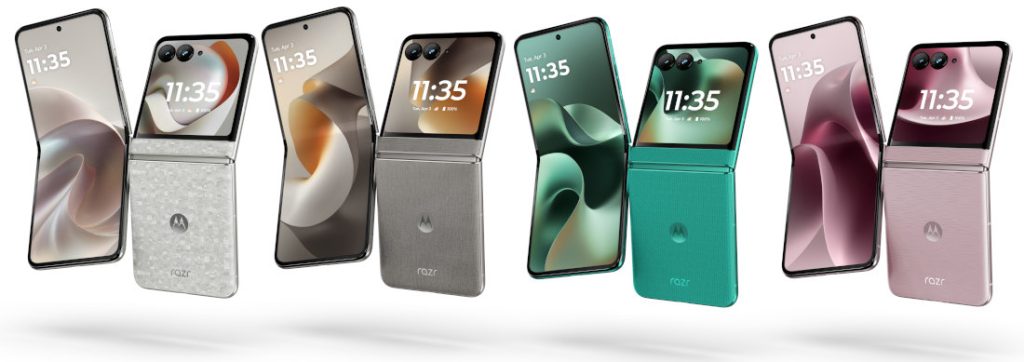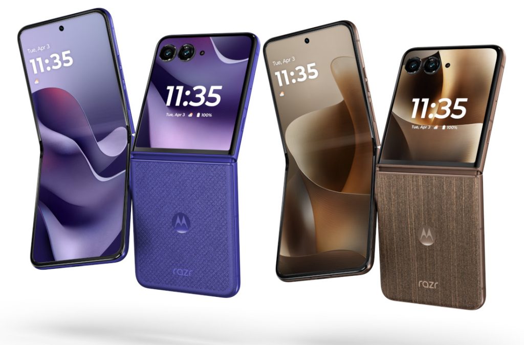 - The razr 70+ and razr 70 utilize Corning Gorilla Glass Victus and are available in various vegan leather, jacquard, and acetate finishes across multiple Pantone colorways.