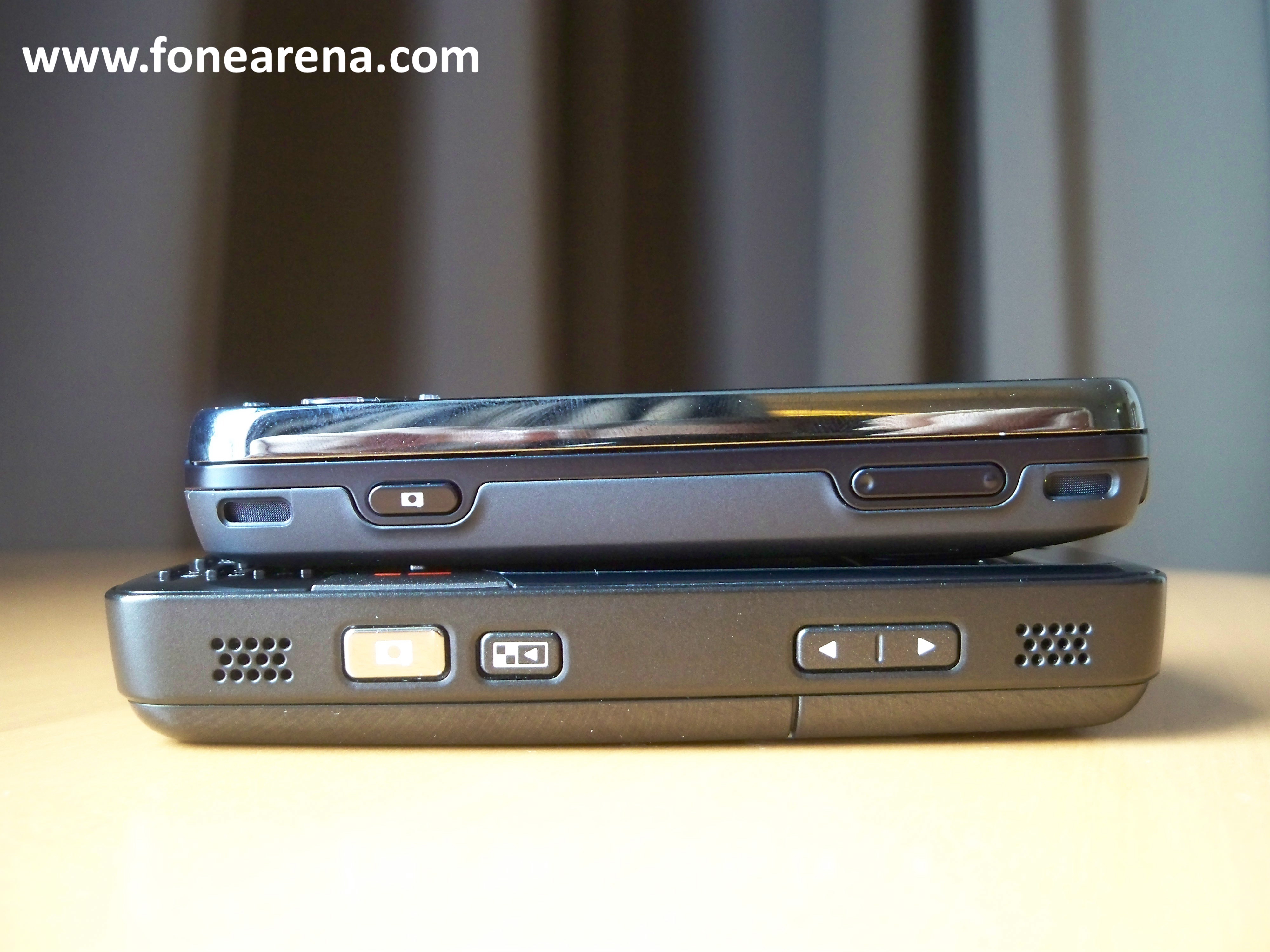 On the right side, both devices have the stereo speakers, volume keys and camera keys. The N82 also has the old Gallery quick access button.