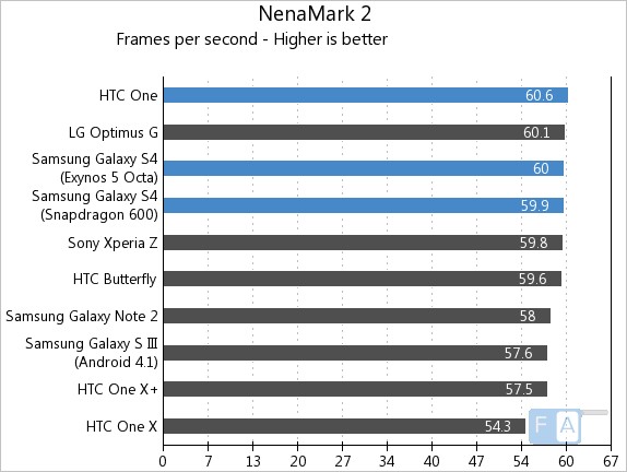 Samsung Galaxy S4 vs HTC One NenaMark 2