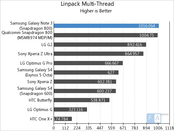 Samsung Galaxy Note 3 S800 Linpack Multi-Thread