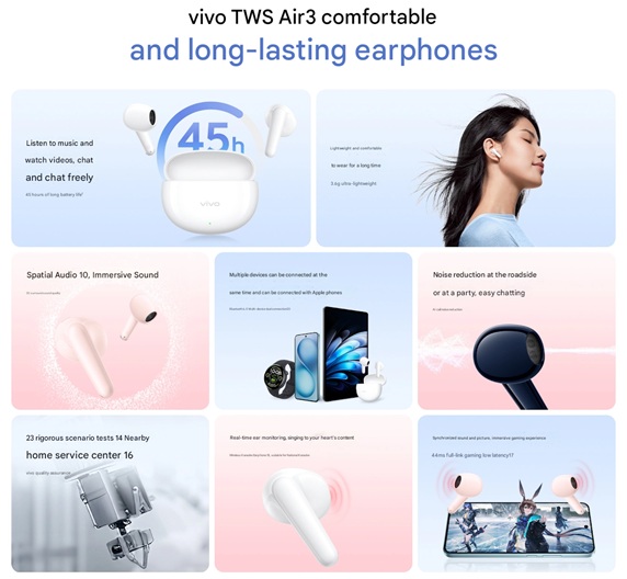 Today, vivo launched its new TWS Air3 earbuds alongside the vivo S30 series in China. The vivo TWS Air3 are lightweight semi-in-ear earbuds, each weighing just 3.6 grams, designed for a comfortable fit even during long listening sessions.
