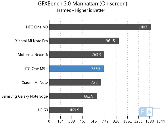 HTC One M9+ GFXBench 3.0 Manhattan