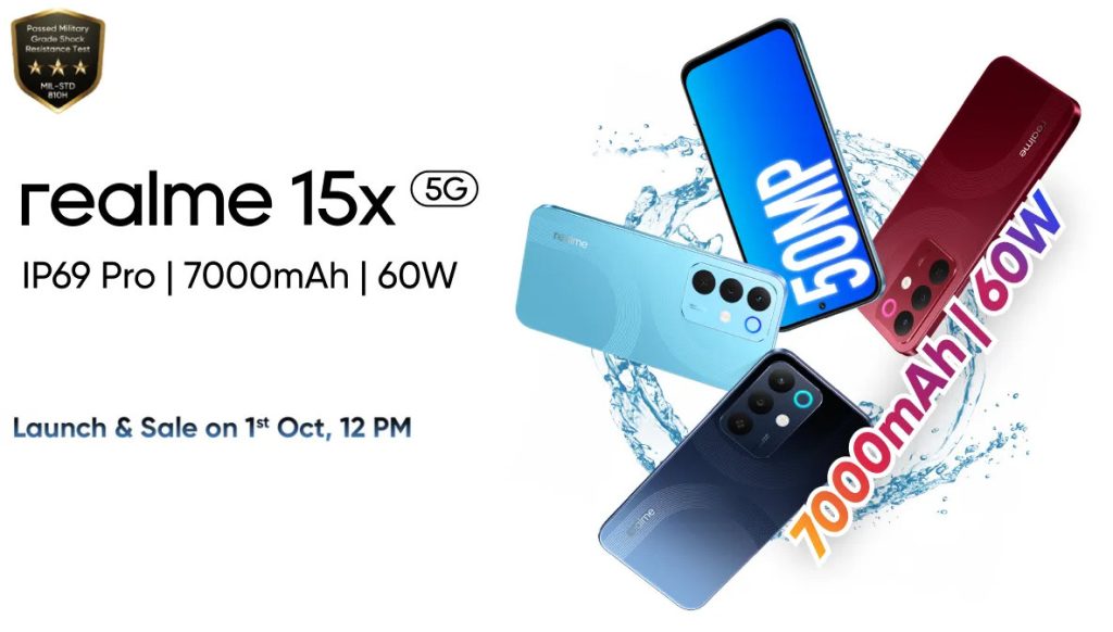 Author Srivatsan SridharPosted on September 29, 2025Categories India, News, realmeTags realme 15x, realme 15x 5G, realme 15x 5G India, realme 15x 5G India launch date, realme 15x 5G launch dateLeave a comment on realme 15x 5G to launch in India on October 1st