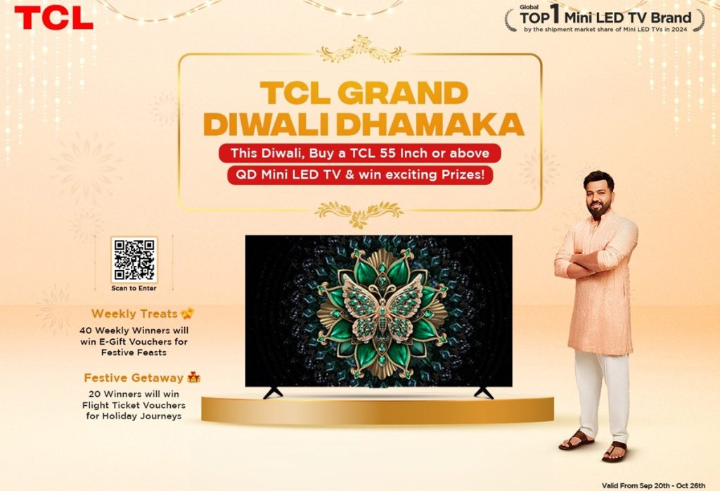 TCL has announced its Grand Diwali Dhamaka campaign, offering rewards to customers purchasing its premium QD Mini LED TVs (55 inches and above). The contest includes weekly prizes, travel vouchers, and a meet-and-greet opportunity with TCL’s brand ambassador, Rohit Sharma. Continue reading “TCL Grand Diwali Dhamaka: Rewards and offers on QD Mini LED TVs”