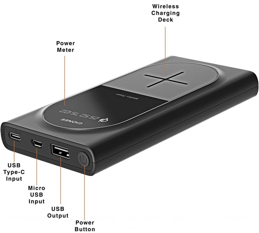 இது ஒரு யூ.எஸ்.பி-ஏ வெளியீடு (5V 2.4A), மைக்ரோ யூ.எஸ்.பி உள்ளீடு (5V 2.4A) மற்றும் யூ.எஸ்.பி டைப்-சி உள்ளீடு (5V 2.4A) ஆகியவற்றைக் கொண்டுள்ளது. இது ஒரு உலோக உடலைக் கொண்டுள்ளது மற்றும் வயர்லெஸ் சார்ஜிங் பேட் மற்றும் யூ.எஸ்.பி-ஏ போர்ட் மூலம் ஒரே நேரத்தில் சாதனங்களை சார்ஜ் செய்யலாம்.