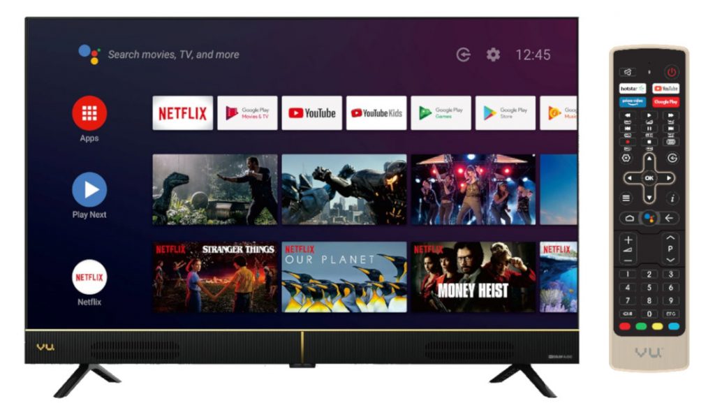 VU இன்ச் HD ரெடி மற்றும் 43 இன்ச் FHD மாடல்களில் ஐபிஎஸ் ஏ + கிரேடு பேனல், பெசல்-லெஸ் டிசைன், மாஸ்டர் ஸ்பீக்கருடன் 40 டபிள்யூ சவுண்ட் பார் மற்றும் டால்பி ஆடியோ மற்றும் குரல்- உடன் மேம்பட்ட ஒலி தெளிவுக்காக ட்வீட்டரை அறிமுகப்படுத்தியுள்ளது. முக்கிய உள்ளடக்க பயன்பாடுகள் உட்பட Android 9.0 பை உடன் வருகின்றது. ஒரு உளிச்சாயுமோரம் குறைவான வடிவமைப்பிற்கான 100% ரோபோ அசெம்பிளியைக் கொண்டிருப்பதாக நிறுவனம் கூறியது, இது முழுமையான துல்லியத்தையும் அனைத்து விளிம்புகளிலும் ஒரே மாதிரியான பிரகாசத்தையும் உறுதி செய்கிறது.